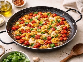 בין אזעקה לאזעקה: ניוקי מחבת זהוב עם עגבניות שרי ושבבי פרמזן
